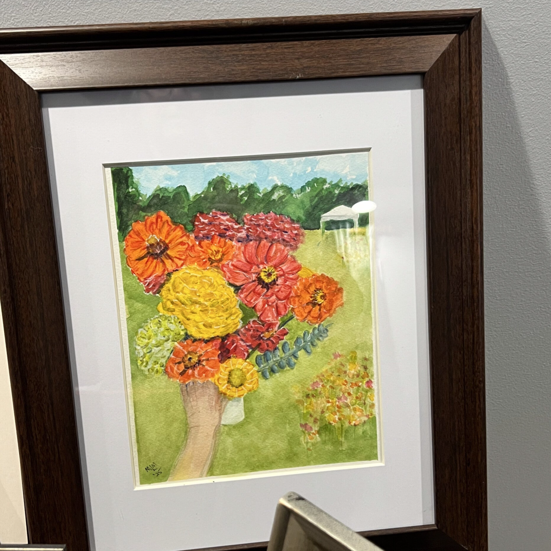 One of a kind ink and watercolor painting in vibrant colors 9x12 inch framed to 13x16